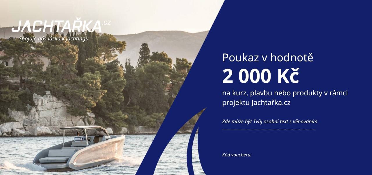 Udělej radost blízkému a daruj poukaz v hodnotě 2 000 Kč na libovolný nákup kurzu, plavby nebo produktu v rámci projektu Jachtařka.cz!