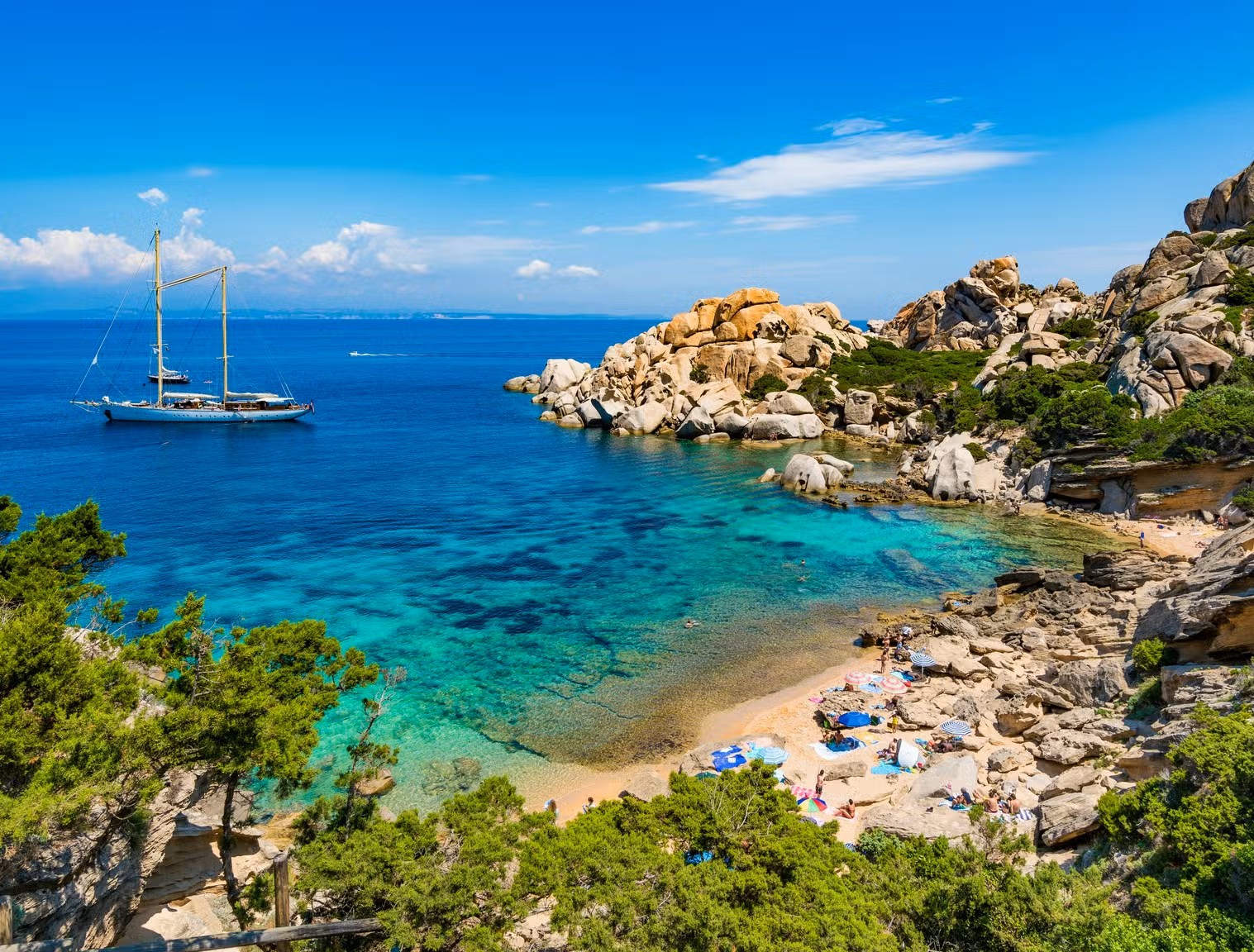 Začneme v oblasti Portisca a během týdne navštívíme místa jako La Caletta, Porto Pozzo, Isola Rossa, případně přejdeme do francouzských vod – do malebného Porto Vecchia nebo legendárního Bonifacia, které doslova vyrůstá z útesů. Proplujeme také mezi ostrůvky La Maddaleny, které patří k tomu nejhezčímu, co Středomoří nabízí. Trasu přizpůsobíme aktuálnímu počasí a podmínkám na moři.